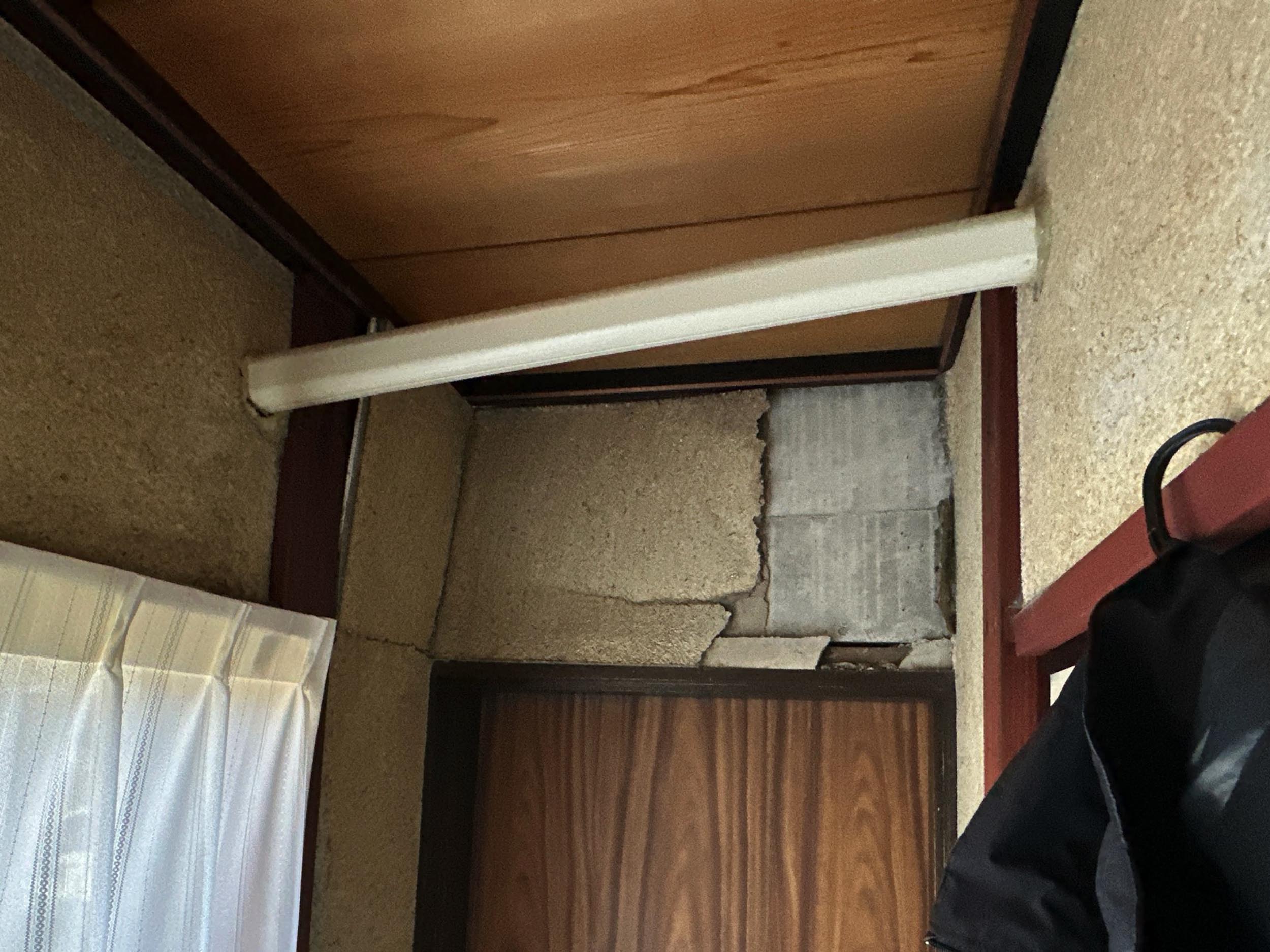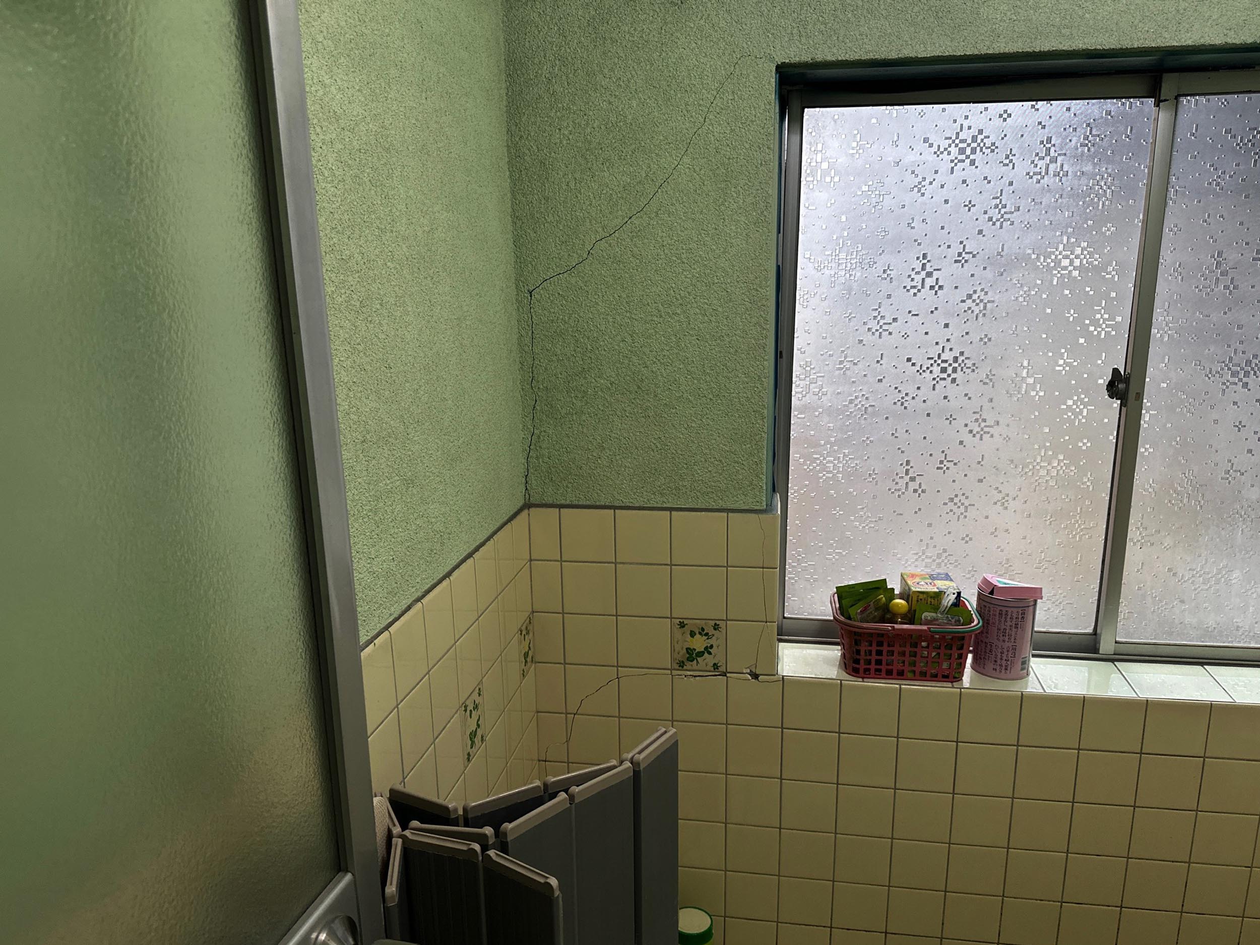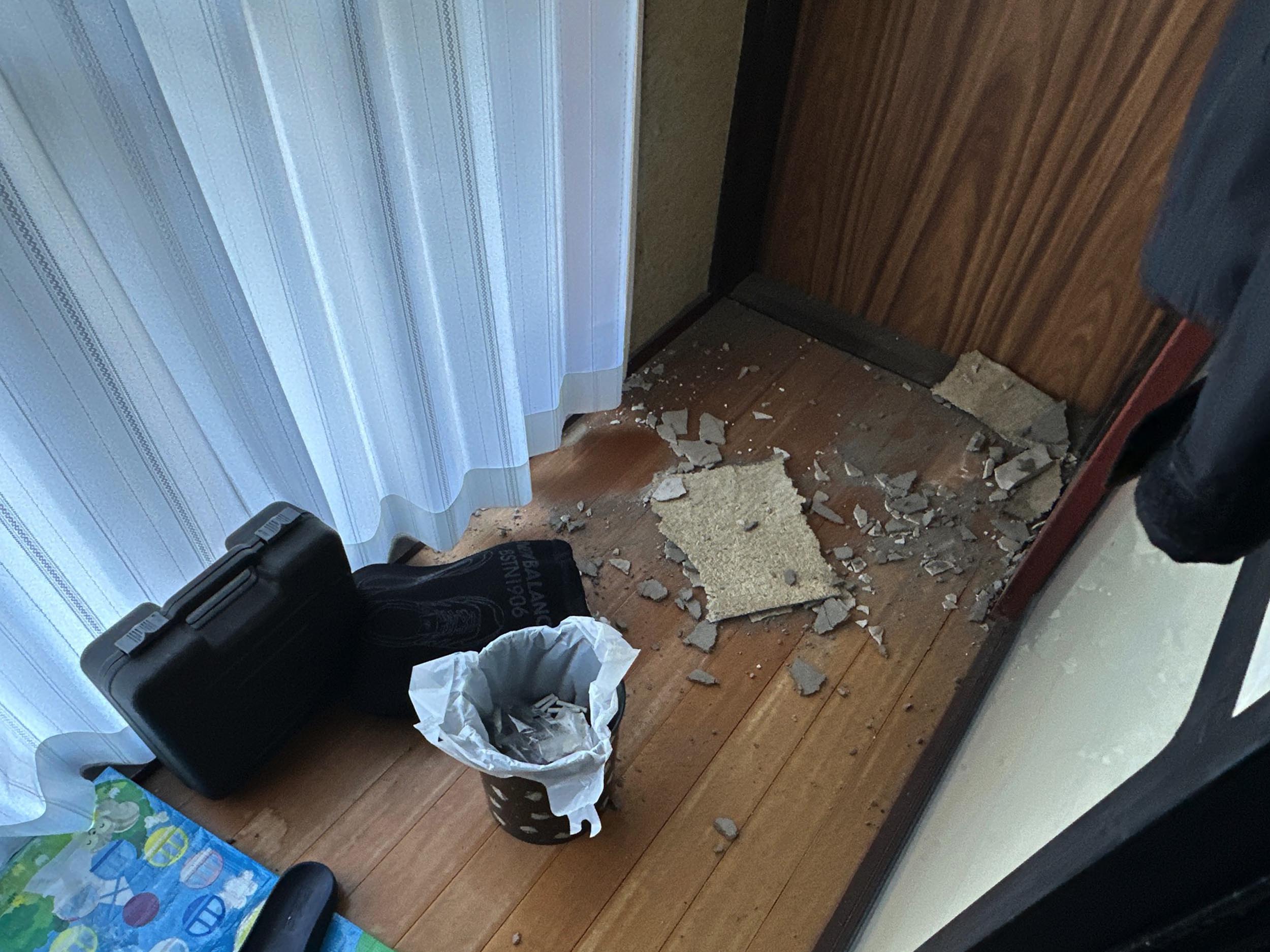 地震庭灯篭倒壊による住宅建具・家具破損二次被害