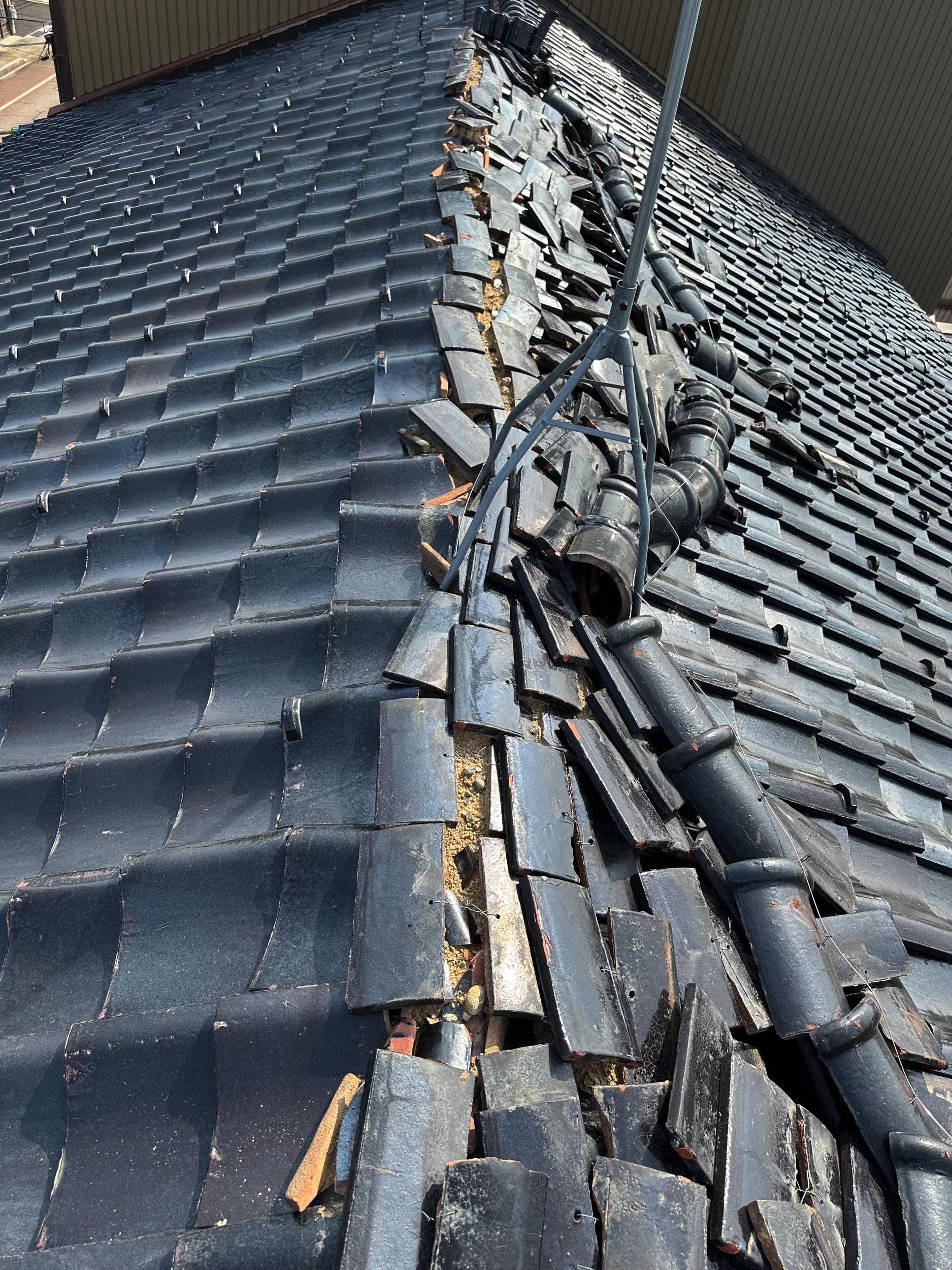 地震棟鬼・のし瓦崩落による平瓦破損二次被害