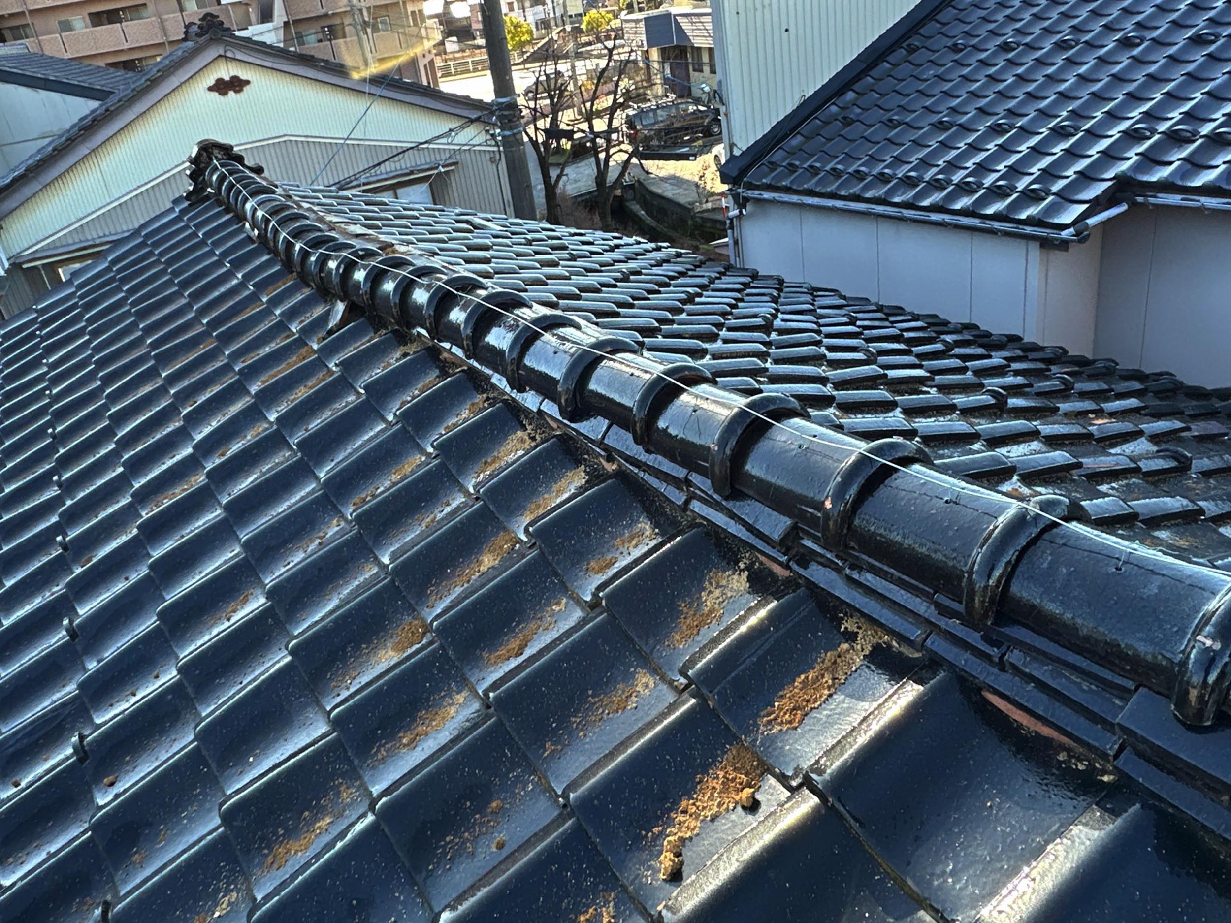 震度5強地震による棟鬼瓦倒れ・棟瓦落下被害